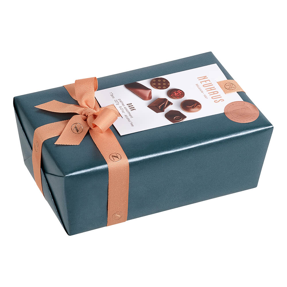 Ballotin Dark- kompozycja ręcznie wykonanych ciemnych czekoladek. To eleganckie pudełko jest idealnym prezentem dla każdego miłośnika czekolady.