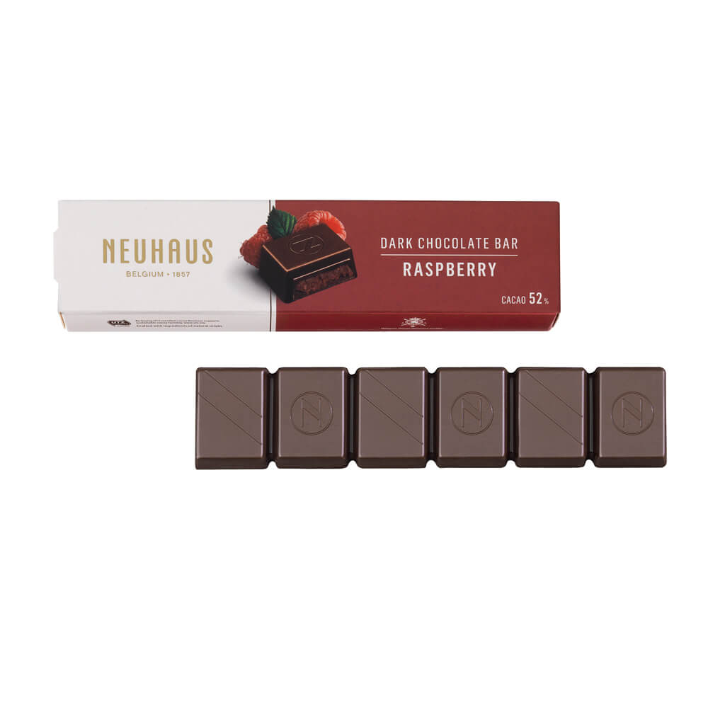 Odkryj nowe batony Neuhaus: wypełnione rozkoszną czekoladą; opracowane z troską przez Neuhaus Maîtres Chocolatiers. Czekolada posiada certyfikat UTZ i dodatki nie modyfikowane genetycznie. Nowe batony są większe, aby jeszcze dłużej się nimi rozkoszować w dowolnym miejscu i czasie. Symfonia smaku czeka na Ciebie