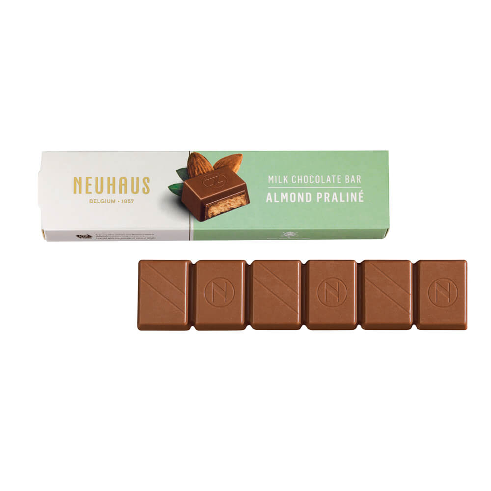 Odkryj nowe batony Neuhaus: wypełnione rozkoszną czekoladą; opracowane z troską przez Neuhaus Maîtres Chocolatiers. Czekolada posiada certyfikat UTZ i dodatki nie modyfikowane genetycznie. Nowe batony są większe, aby jeszcze dłużej się nimi rozkoszować w dowolnym miejscu i czasie. Symfonia smaku czeka na Ciebie