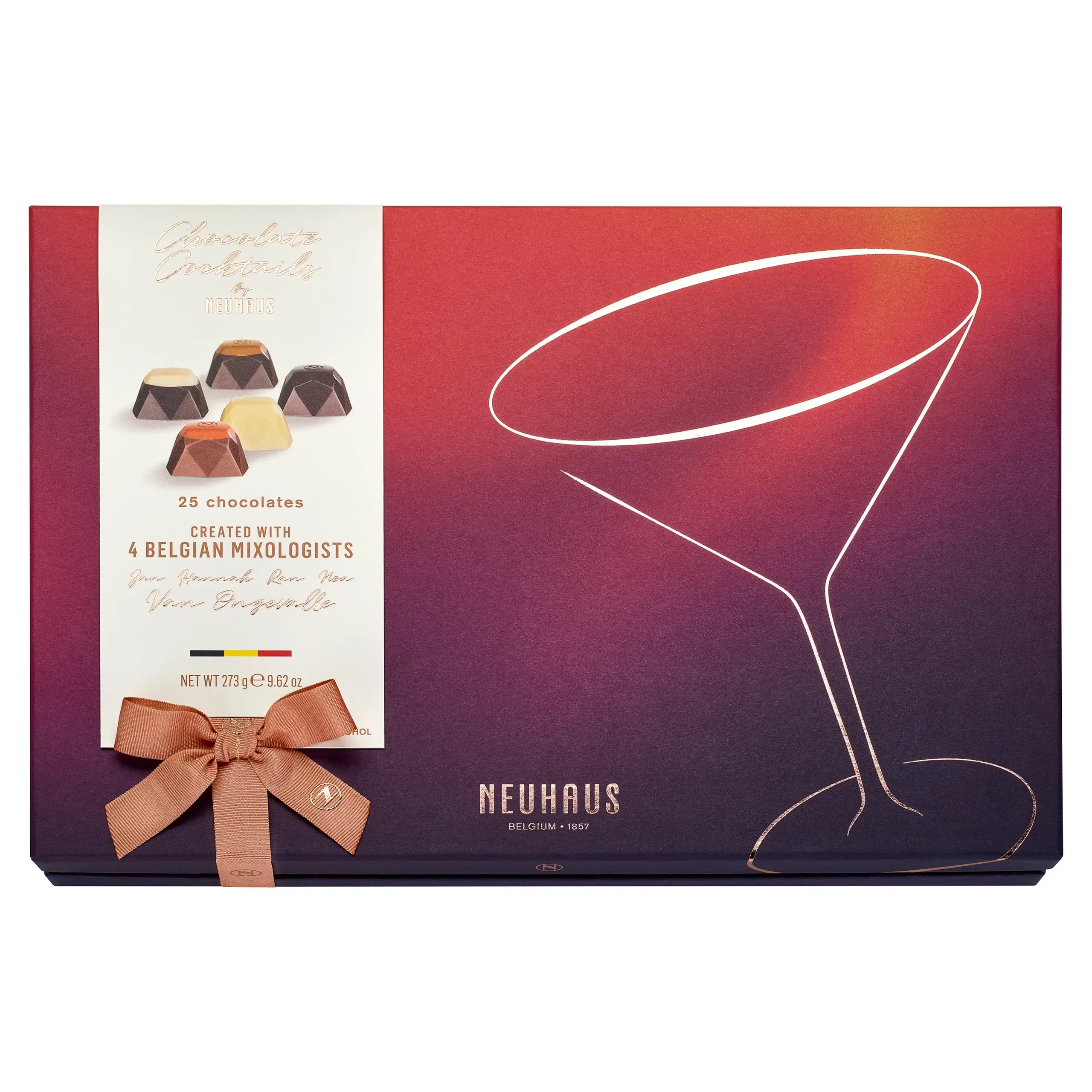 Skład: czekolada gorzka (miazga kakaowa, cukier, olej maślany (mleko), tłuszcz kakaowy, emulgator: lecytyny sojowe, aromat), biała czekolada (cukier, tłuszcz kakaowy, pełne mleko w proszku, emulgator: lecytyna sojowa, aromat), czekolada mleczna (cukier, pełne mleko w proszku, miazga kakaowa, tłuszcz kakaowy, emulgator: lecytyny sojowe, aromat), przecier jabłkowy, syrop glukozowy, stabilizator: sorbitol, wódka, cukier, substancja utrzymująca wilgoć: glicerol, kakao w proszku, alkohol etylowy, whisky (jęczmienna), orzechy laskowe, masło kakaowe , yuzu, umeshu, sherry, sake, rum, czerwona porzeczka, mezcal, tequila, miazga kakaowa, napój alkoholowy z pomarańczą, napój alkoholowy absynt, gin, miód, pełne mleko w proszku, pasta karmelowa (syrop glukozowo-fruktozowy, mleko skondensowane słodzone (cukier, mleko), tłuszcz kokosowy, woda, substancja utrzymująca wilgoć: glicerol z nasion rzepaku, emulgator: lecytyna sojowa, sól), napój spirytusowy o gorzkim smaku, aromaty, syrop cukru inwertowanego, przyprawy, jagody, kwas: kwas cytrynowy; woda, barwnik: koncentrat jabłkowy, burak czerwony, koncentrat z czarnej porzeczki, kurkumina, koncentrat cytryny, ekstrakt z papryki, koncentrat rzodkiewki, ekstrakt ze spiruliny; cytryna, koncentrat soku z limonki, skrobia z tapioki, sól (Guérande), wanilia, emulgator: lecytyna sojowa; olej maślany (mleko), olej limonkowy, kwiat słodkiego fiołka, substancja zagęszczająca: guma arabska.